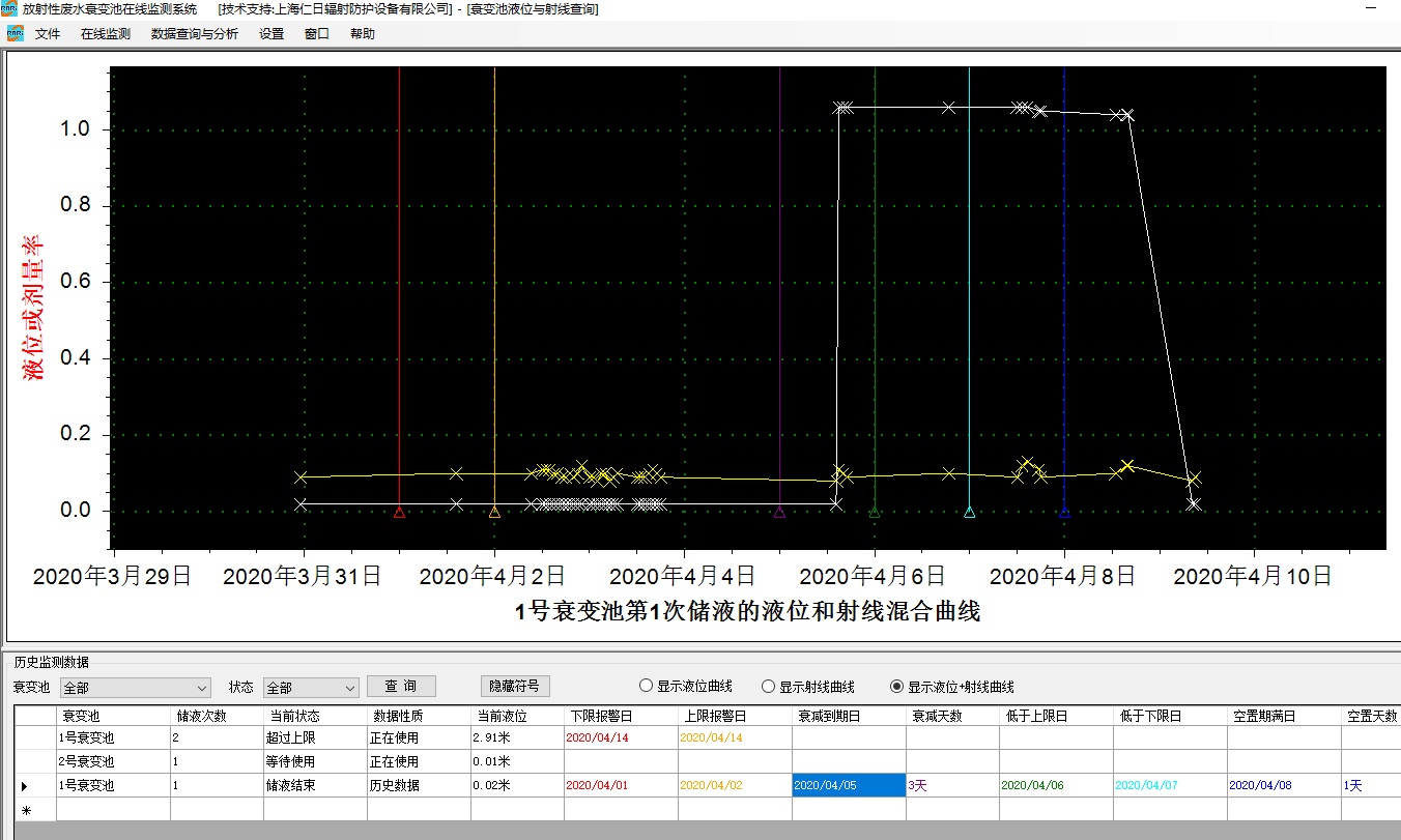 監(jiān)測軟件自動計算衰變池從開始注液到排放結(jié)束的七個不同時期逐漸顯現,并分別給出警示