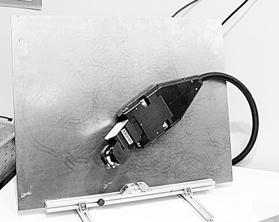 在展臺上應用優勢,記者看到一個像壁虎一樣吸附在鐵板上爬行的機(jī)器高質量發展,不禁問道:它能干什么?