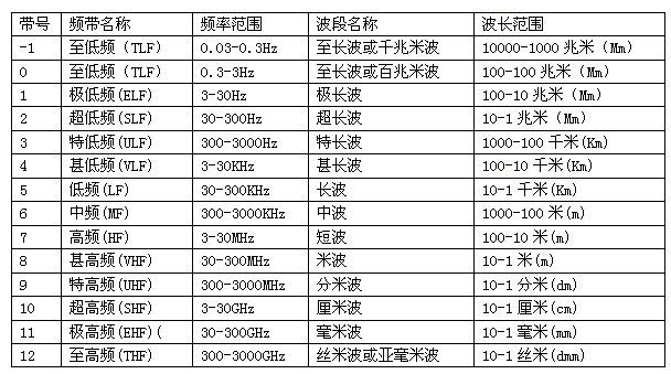 目前,根椐《中華人民共和國(guó)無線電頻率劃分規(guī)定》效高性,我國(guó)已對(duì)9K~1000GHz頻帶內(nèi)的無線電業(yè)務(wù)做出了規(guī)劃模式,對(duì)無線電頻帶和波段也做了命名(見表1)自動化。