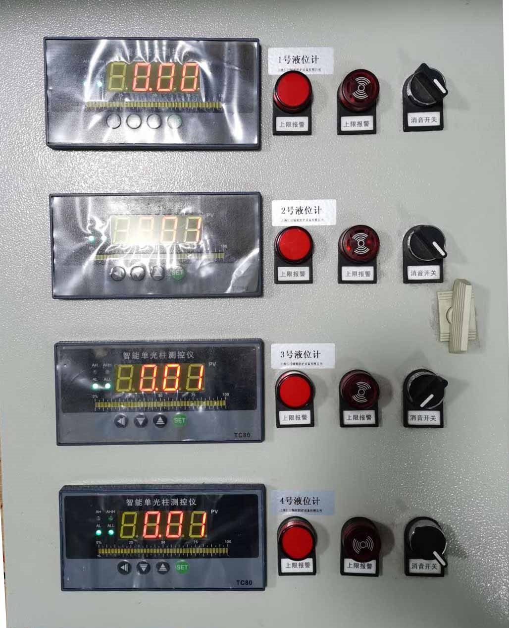 控制柜內(nèi)部嵌入有多個液位變聲器控制主機建設應用,該主機能實時采集液位變送器的數(shù)據(jù),并更加設定的報警閾值給出 上下限閾值聲光報警的功能